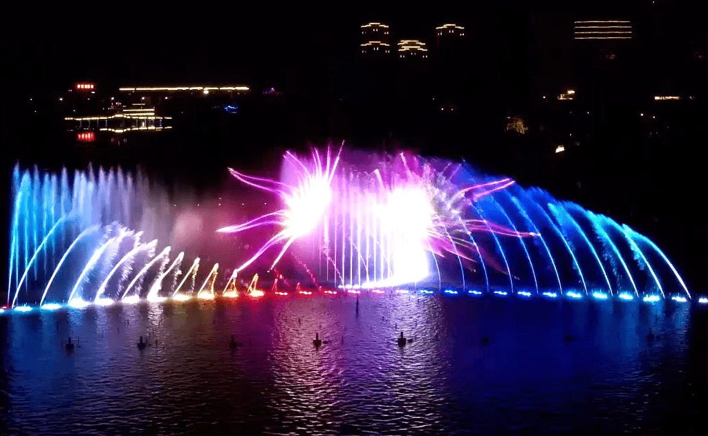 项目配置:水幕电影、时光矩阵,激光秀,北极光、音乐喷泉:中心直上、蒸蒸日上、花篮水型、凤尾水型、跑泉水型、一维水型、二维水型、大鹏展翅等。